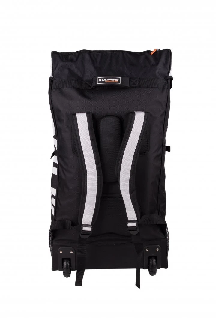 With this luxury trolley backpack you can carry your complete iSUP set, including paddle and pump, wherever you want. Roll it on the streets or carry it on your back when the terrain gets rough. The large lid and the large zippers make it extremely easy to take out your board or put it in back in. The straps on the inside keep your rolled-up board in its place. The two extra pockets are convenient places to store your fins and other accessories.